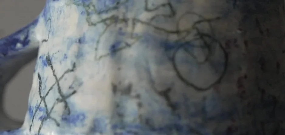Bizzaro Uses the nerikomi method of colorng and patterning porcelain.